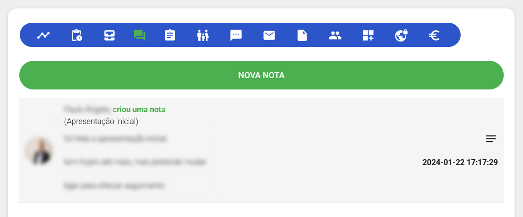 - Visualizar a Timeline de tarefas, notas, processos e outros