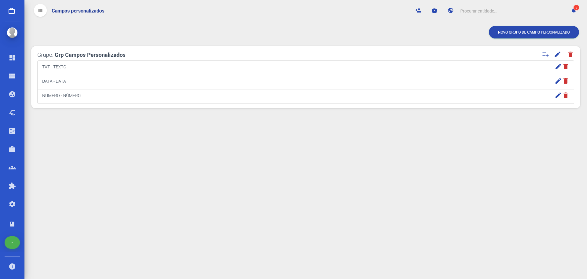Para começar, é necessário criar primeiro um grupo de campos, clicando no botão “Novo Grupo de Campo Personalizado”.