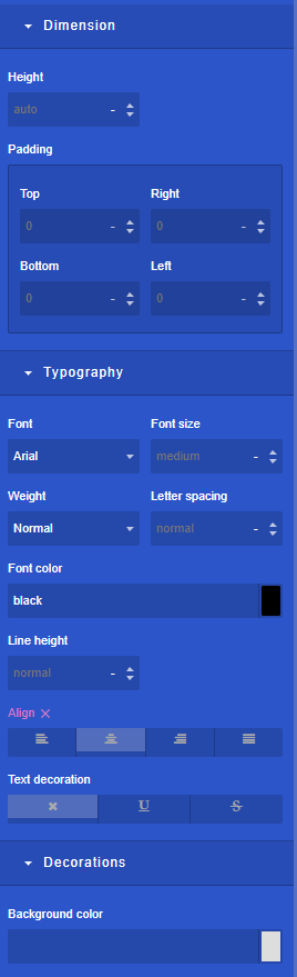 Aqui poderá alterar algumas especificações visuais do seu email, tipos de letra, as dimensões dos componentes, a cor de fundo, etc. Nas definições, altere todos os IDs e o título para algo relacionado ao que o elemento é. Ou seja, se for uma imagem, poderá colocar como ID e título: “img”. Ambos poderão ter o mesmo nome, pois as suas funções são diferentes. O ID será bastante utilizado em termos de código para estilização, caso utilize essa opção. O título serve para identificar de uma maneira mais ágil qual o componente.