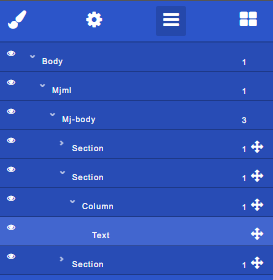 No gerenciador de camadas, poderá visualizar os componentes que compõem o seu email. Poderá alterar a sua posição, poderá ocultá-los caso deseje.