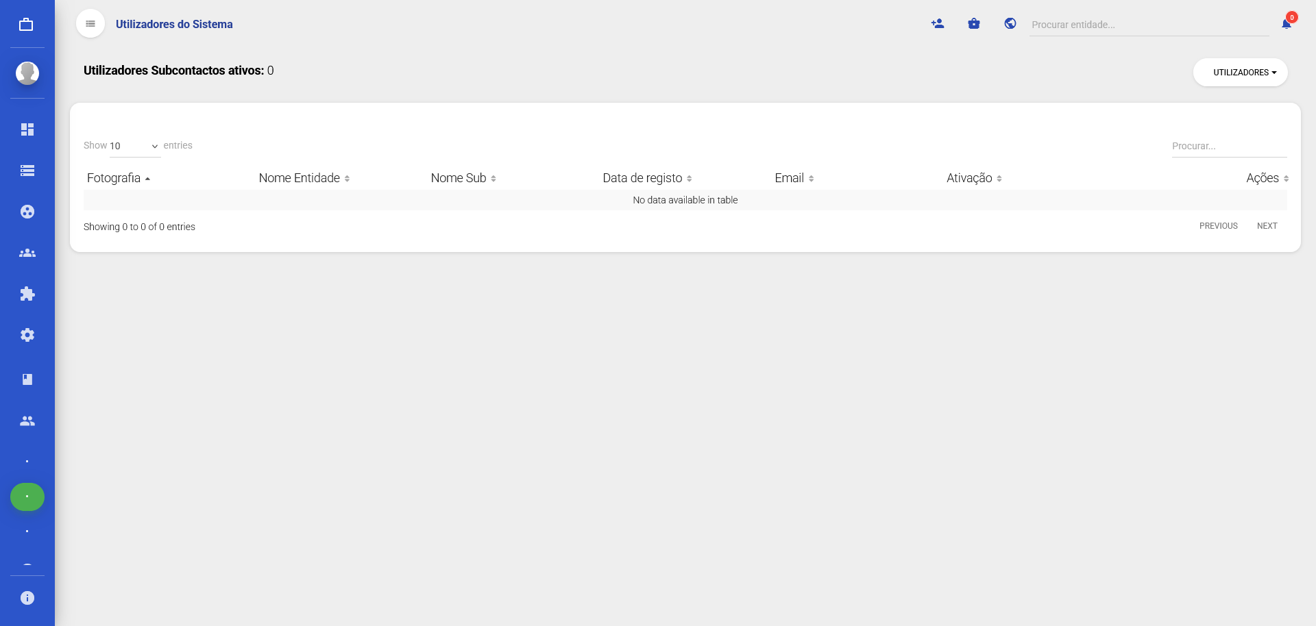 Pode consultar, de forma geral, todos os sub-contactos existentes na sua base de dados. Tem à disposição as opções de desativar, editar ou convidar sub-contactos. Além disso, é possível filtrar os utilizadores pelo seu estado de ativação: Confirmados, Pendentes ou Bloqueados.