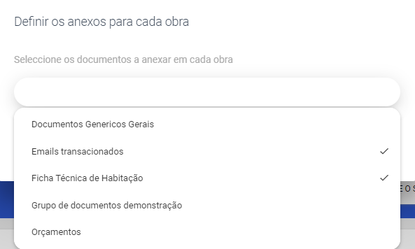 A primeira opção permite selecionar os documentos que pretende que estejam anexados na obra.