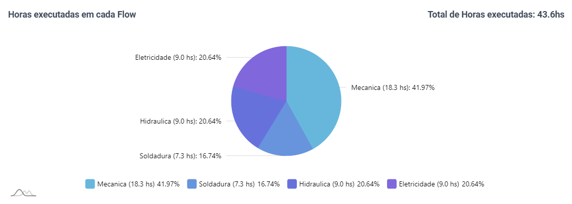 Poderá visualizar em forma de gráfico, as percentagens do progresso do seus flows. Ao clicar na segunda opção do painel de Fluxo de Produção, será aberto um gráfico.