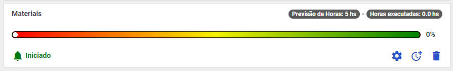 E um breve resumo do total de horas por fluxo, valor, quantidade e materiais definidos previamente na criação de orçamento.