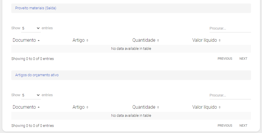 Este recurso permite o controle orçamental da sua obra, detalhando os custos previstos em cada fluxo, bem como o custo total ou parcial dos materiais necessários para a sua conclusão. Oferece funcionalidades para adicionar fluxos e materiais previamente definidos, além de possibilitar a filtragem dos projetos existentes de acordo com o seu status.