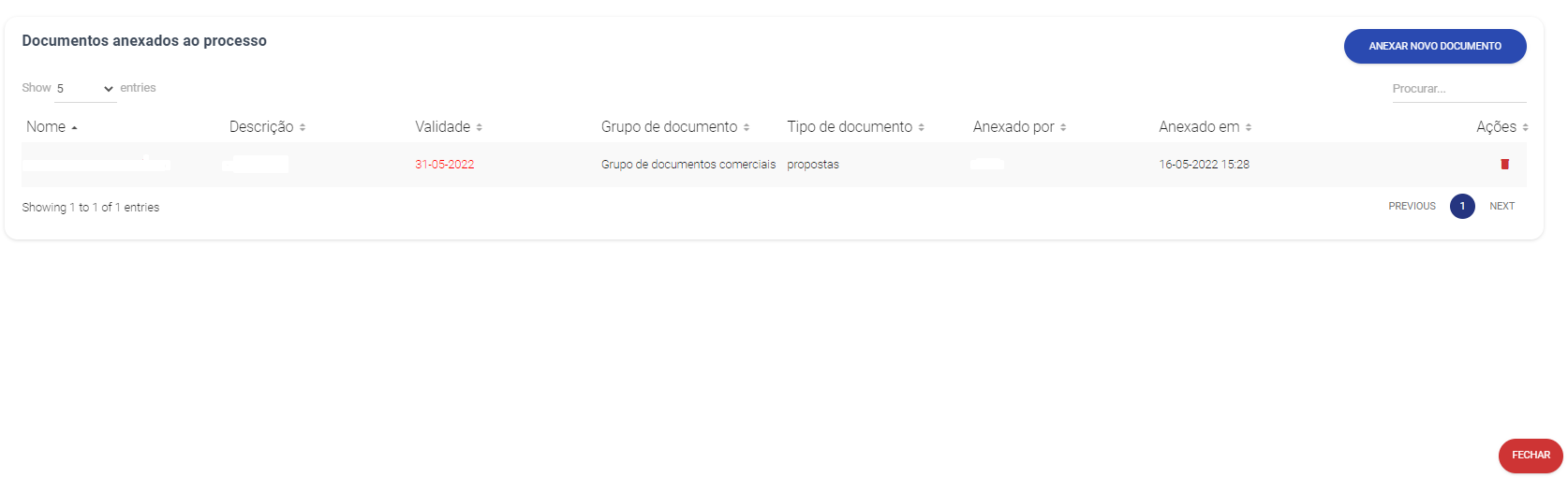 Na parte superior da obra, poderá anexar novos documentos ao orçamento e remover os existentes.