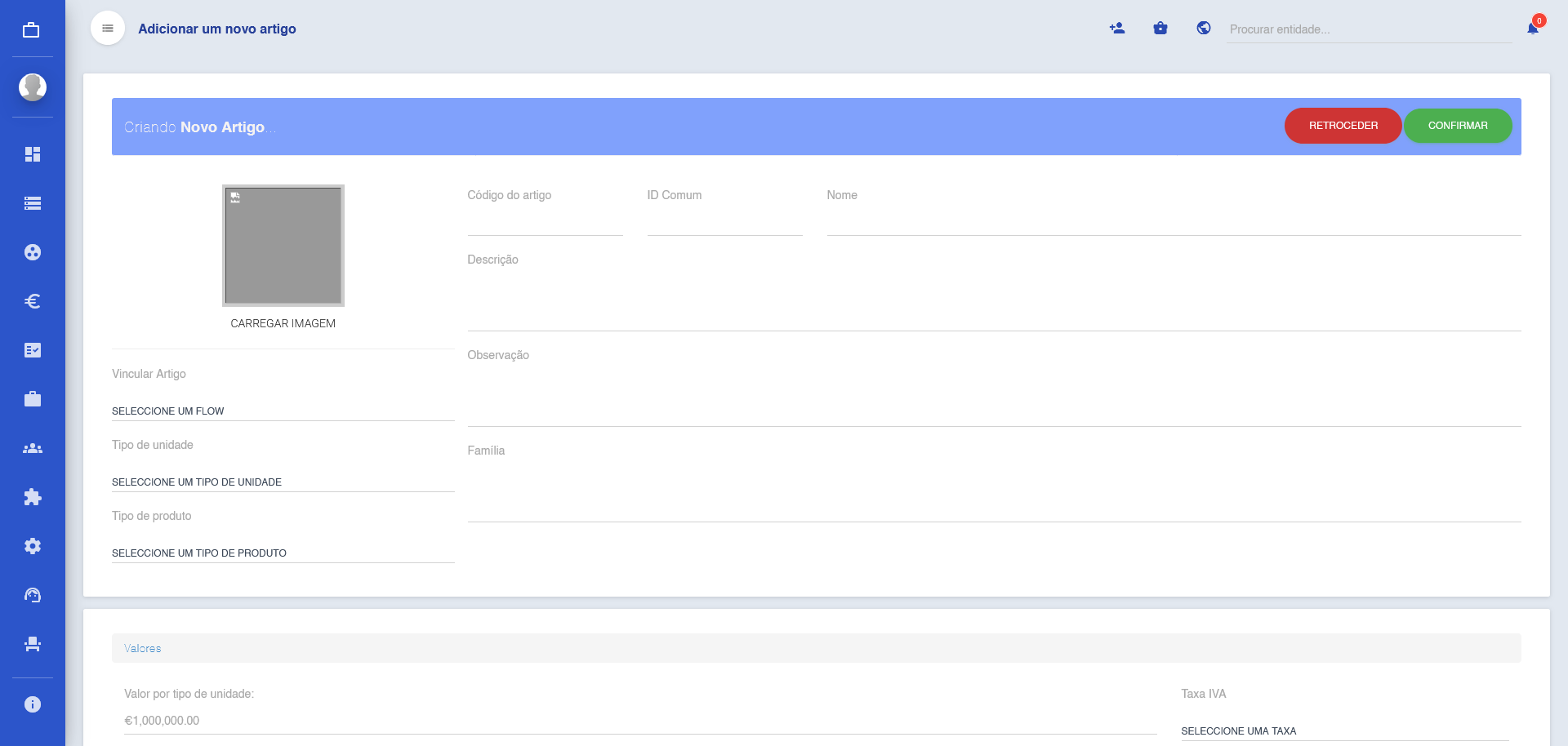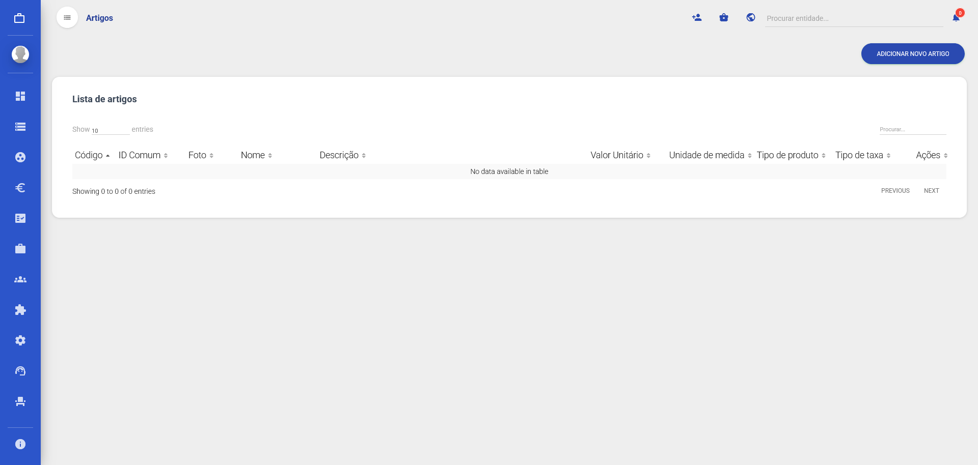 Esta subcategoria permite ao utilizador registar os artigos pertencentes à sua empresa.