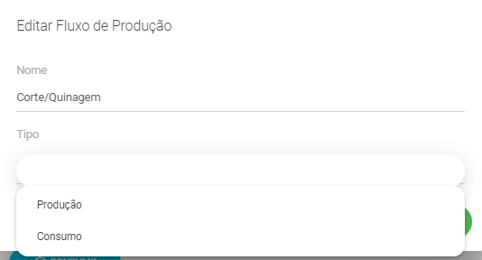 Para adicionar, poderá clicar na opção de “Adicionar novo fluxo de produção” e preencher o pequeno formulário e definir o seu nome e tipo. Confirme para guardar.